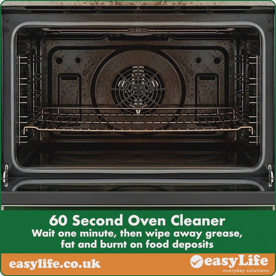 Spray this amazing 60 second Oven Cleaner onto oven surfaces, wait one minute, then wipe away grease, fat and burnt on food deposits with minimal effort, leaving your oven sparkling clean. Suitable for use on racks and grills of ovens and BBQ’s. 500ml. Made in the UK